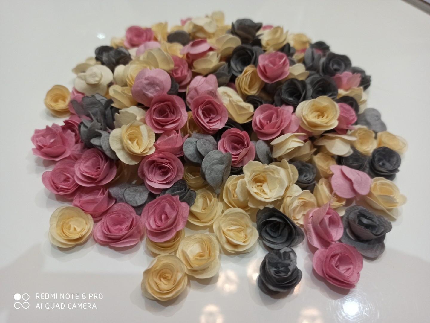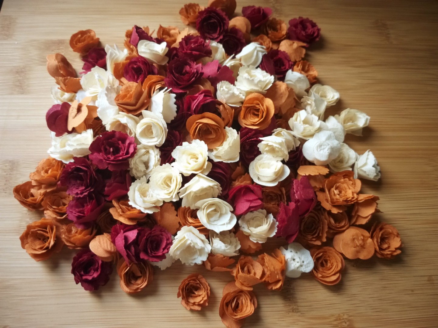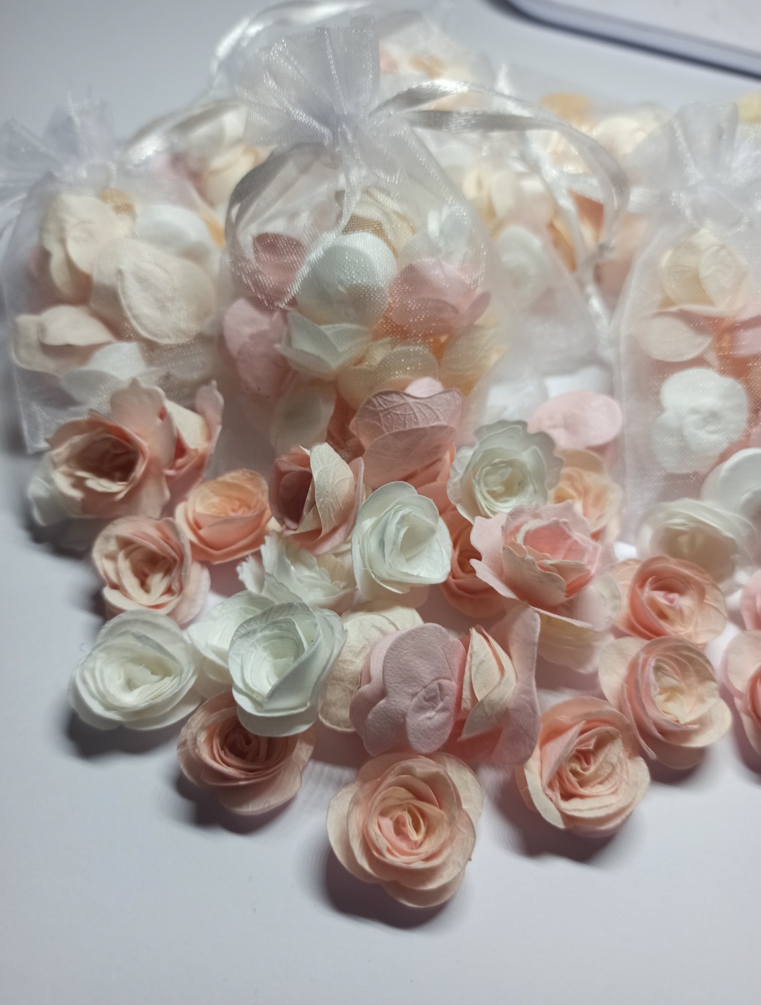 These confetti flowers are all biodegradable. In this gallery you may find the individual single colors available for you to mix and match according to your wedding color scheme. Further down, you may find ideas for different color combinations.
